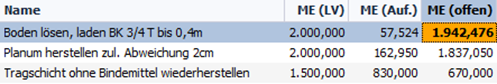 In der Aufmaßnavigation wurde eine neue Spalte „ME (offen)“ hinzugefügt.