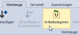 Im Ribbon im Reiter „Werkzeuge“ wurde ein neuer Button „Artikelkategorien“ hinzugefügt: