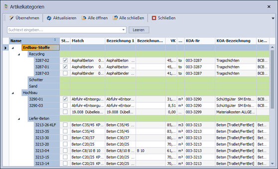Beim Klick auf diesen Button öffnet sich ein neues Fenster „Artikelkategorien“: