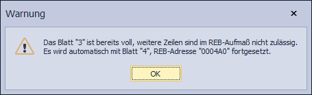 es erscheint eine Warnung und es wird auf das nächste Blatt umgeschaltet.