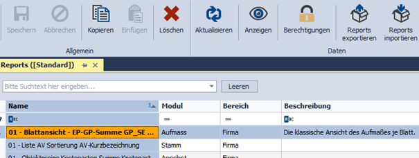 Hier werden alle Reports aufgelistet und lassen sich anzeigen.