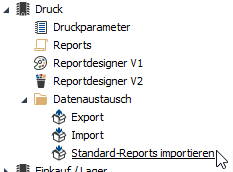 Die neuen Standard-Reports lassen sich durch den Menüpunkt „Standard-Reports importieren“ einspielen bzw. updaten: