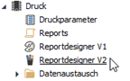 Ein neuer Menüpunkt „Reportdesigner V2“ wurde hinzugefügt.