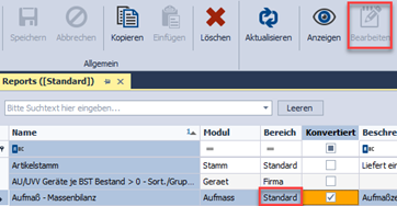 Ist der Report ein Standard-Report (Spalte „Bereich“),