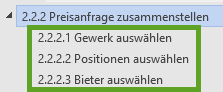 Nach der Auswahl eines Gewerkes werden die Positionen zugewiesen.
